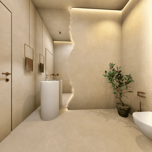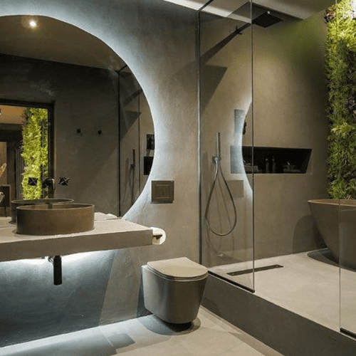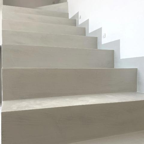 Microzement kann auf Böden, Wänden, Möbeln und sogar auf Außenflächen verwendet werden und passt sich jedem Raum und Stil an.