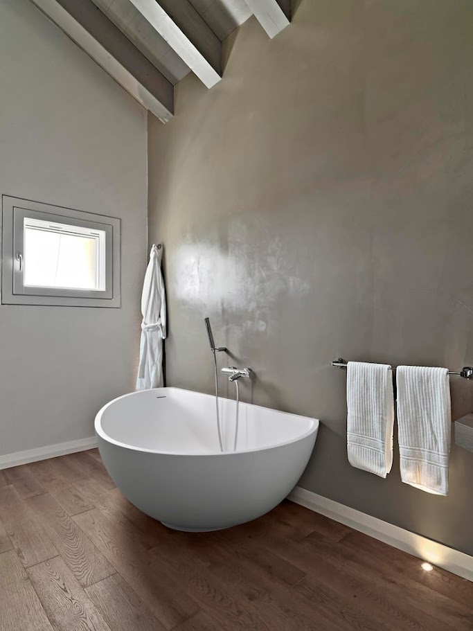 • Mikrozement bietet die größte Gestaltungsvielfalt für Oberflächen in feuchten Umgebungen wie Schwimmbädern, Wannen und Springbrunnen.