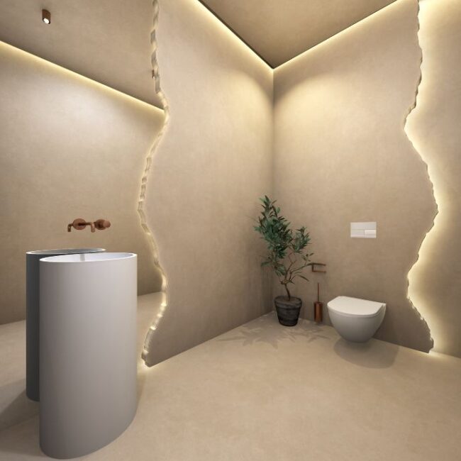 • Nahtlos und durchgehend, mit sanften Übergängen von Wand zu Wand oder zum Boden.