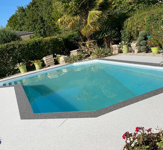 4. Ästhetik: Steinteppiche verleihen der Poolumrandung ein natürliches, modernes und elegantes Aussehen.