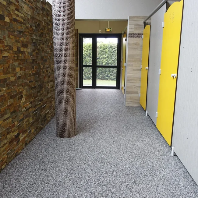 • Schallabsorption: Der Steinteppich dämpft Geräusche, was besonders in stark frequentierten Bereichen vorteilhaft ist.