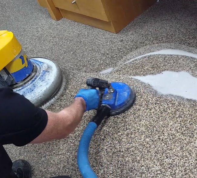 • Gründliche Tiefenreinigung: Mit speziellen Reinigungsmaschinen entfernen wir hartnäckigen Schmutz und Ablagerungen tief aus den Poren Ihres Steinteppichs.
