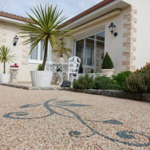 Der Belag Ihrer Steinteppichterrasse muss mit Ihrem Zuhause harmonieren und robust sowie langlebig sein. Steinteppich ist daher der ideale Bodenbelag für Ihre Terrasse. Darüber hinaus stehen Ihnen auch unendlich viele Gestaltungsmöglichkeiten zur Verfügung: pflanzlich, geometrisch, symbolisch... Lassen Sie Ihrer Fantasie freien Lauf!